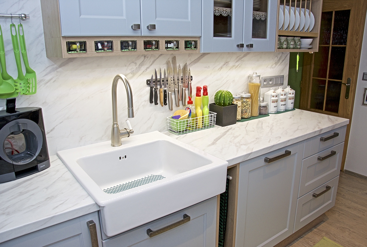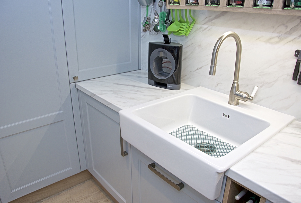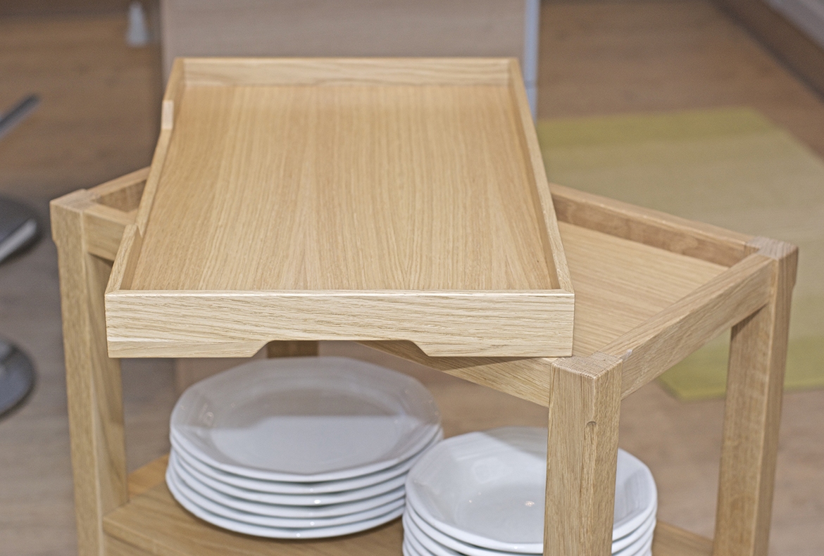 Kuchyně ve stylu vintage s ostrůvkem jsme ozvláštnily o menší pojezdný jídelní stolek, který se dá využít mnoha způsoby.
