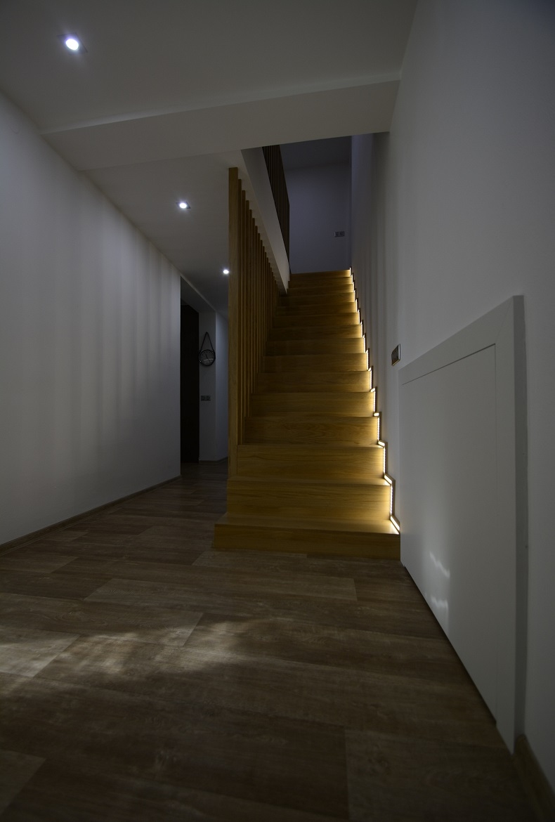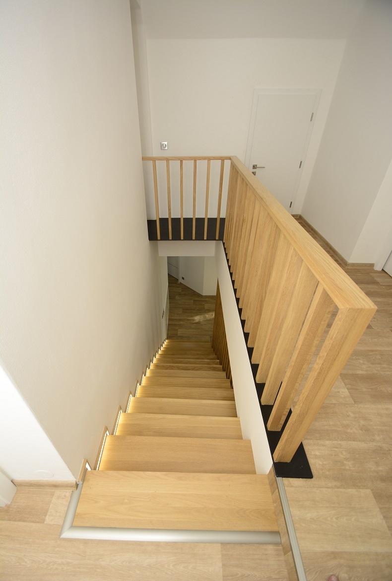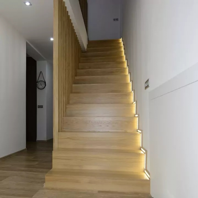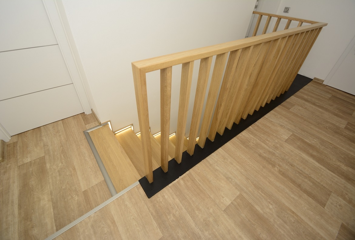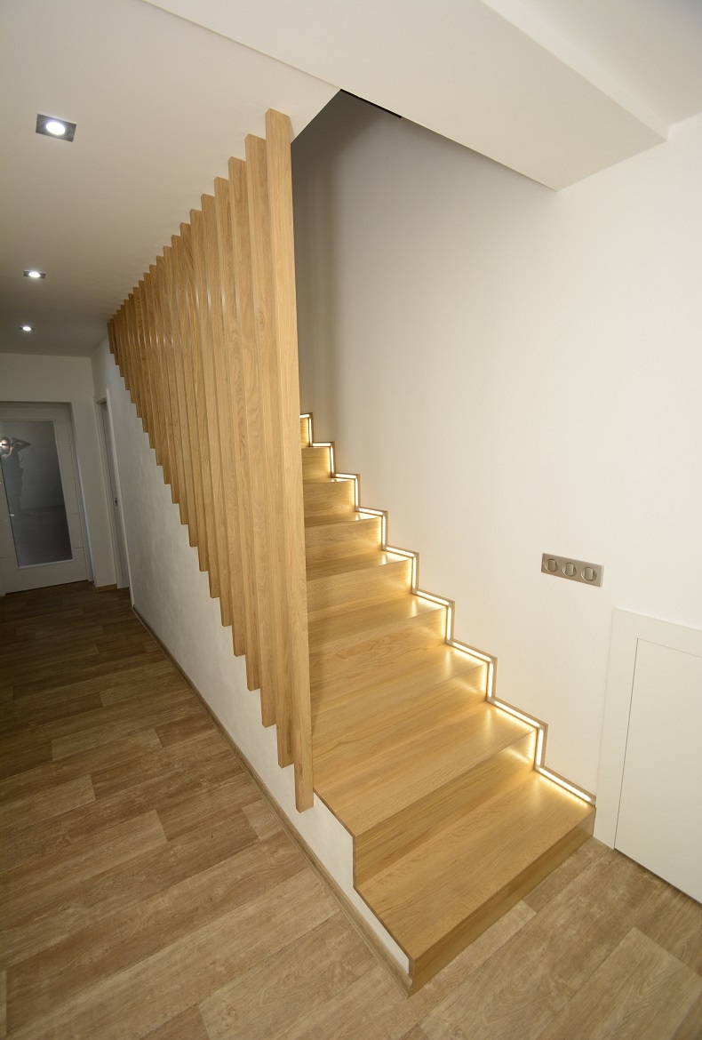 Moderní dubové Schodiště s rastrem a led osvětlením.