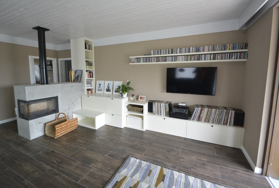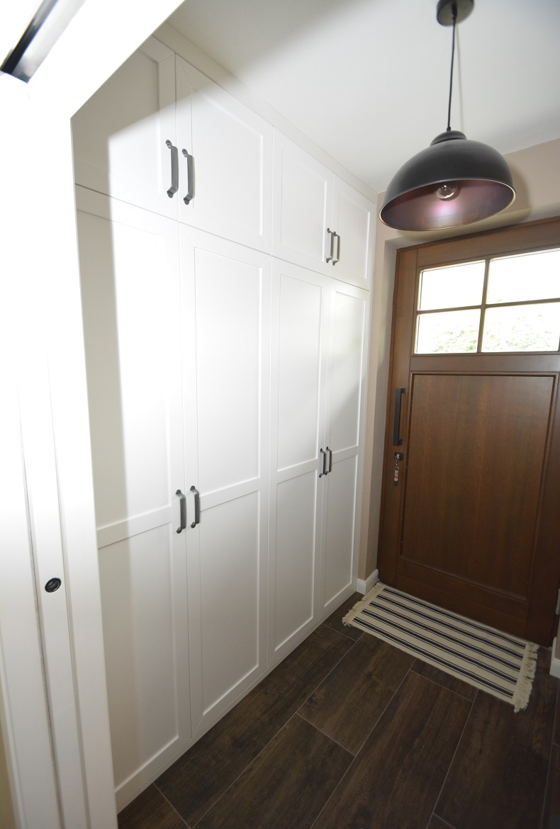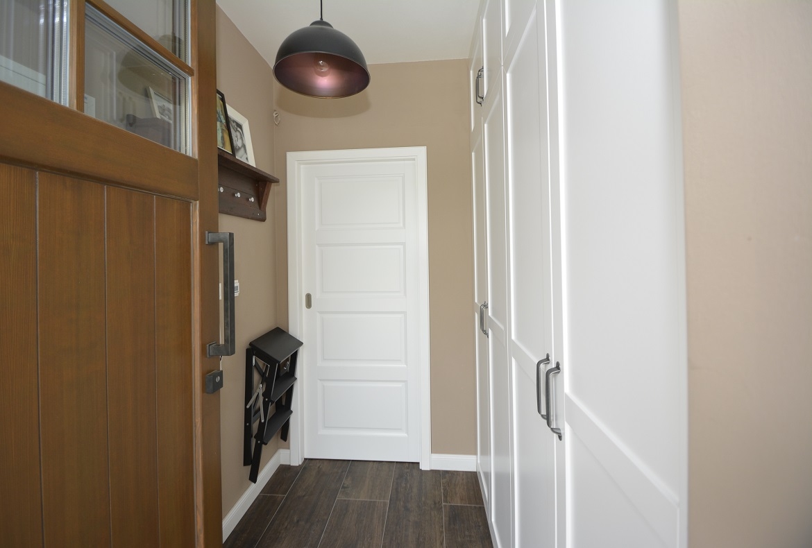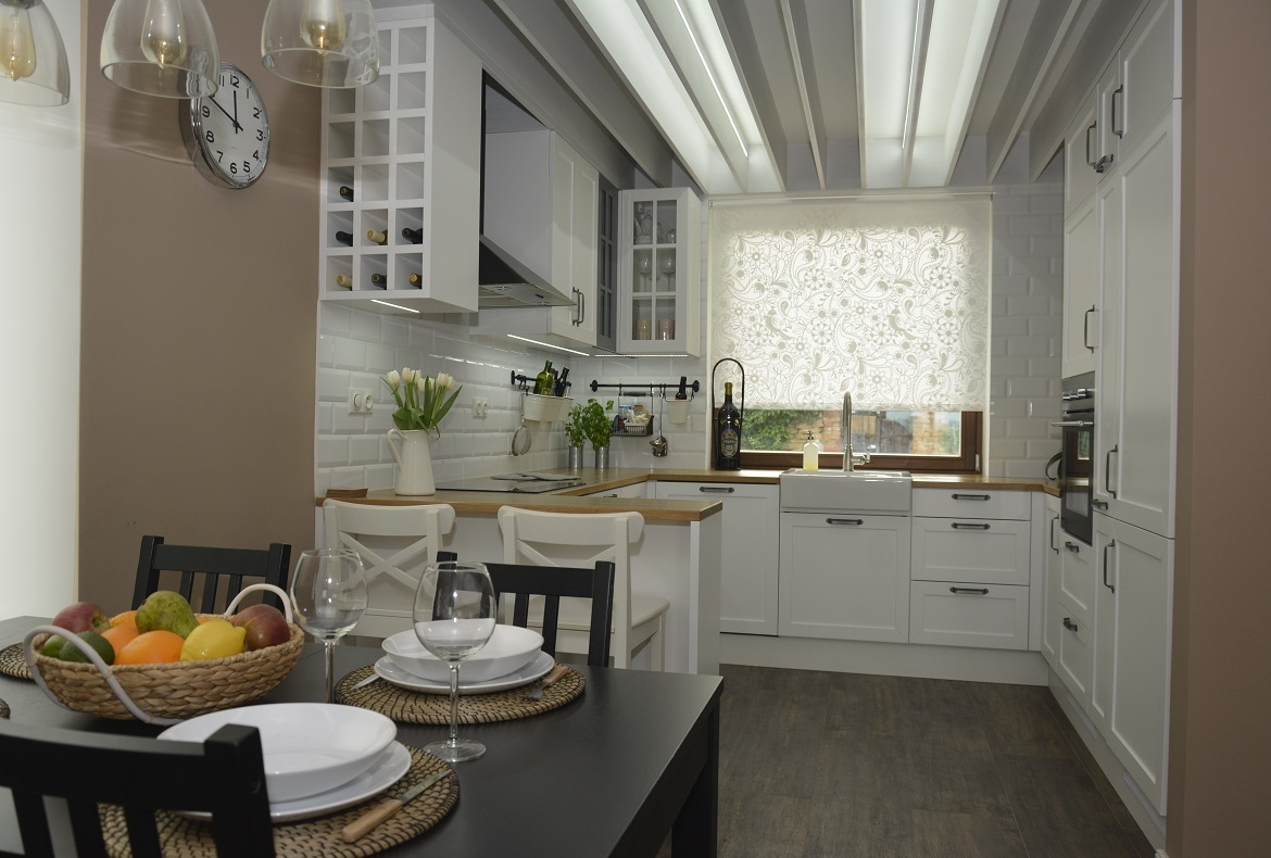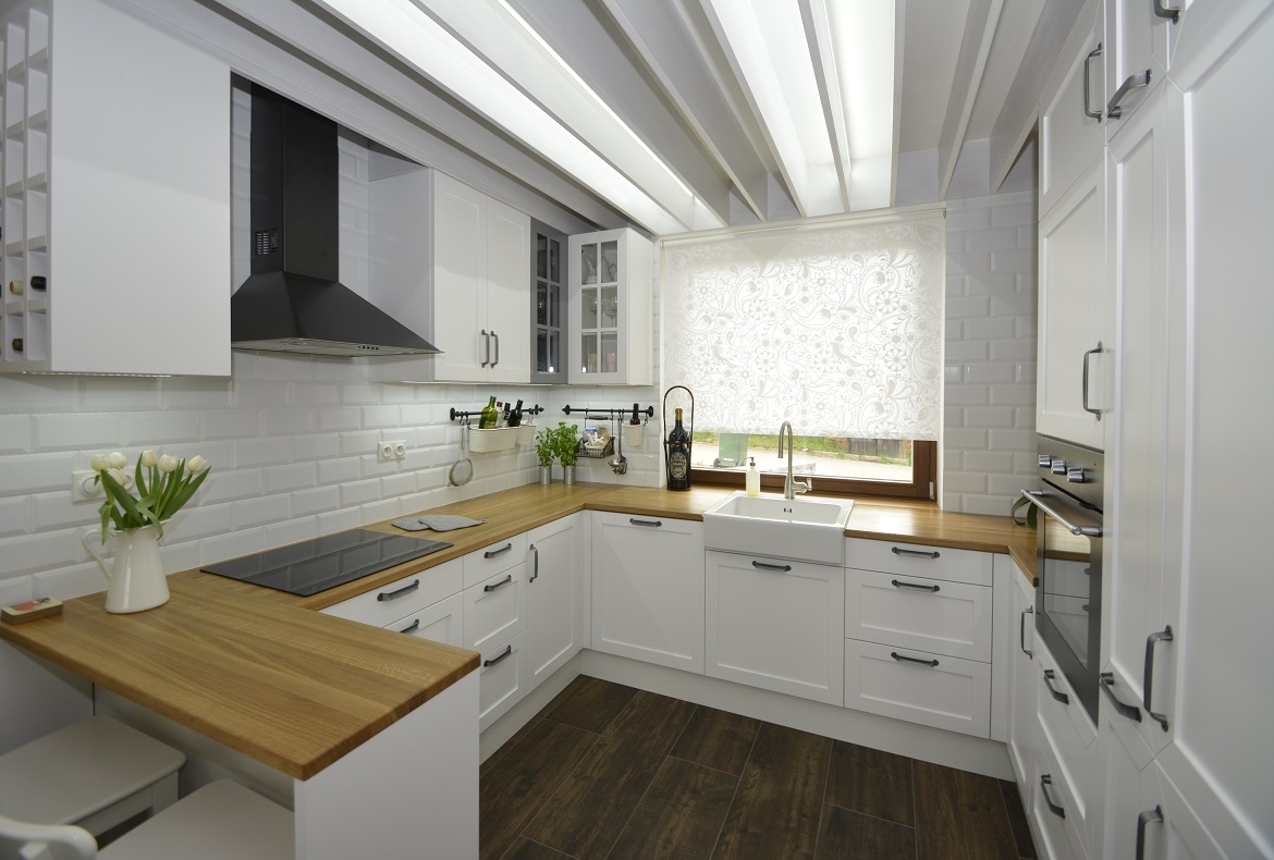 Anglický interiér v přírodních materiálech s kombinací bílé.