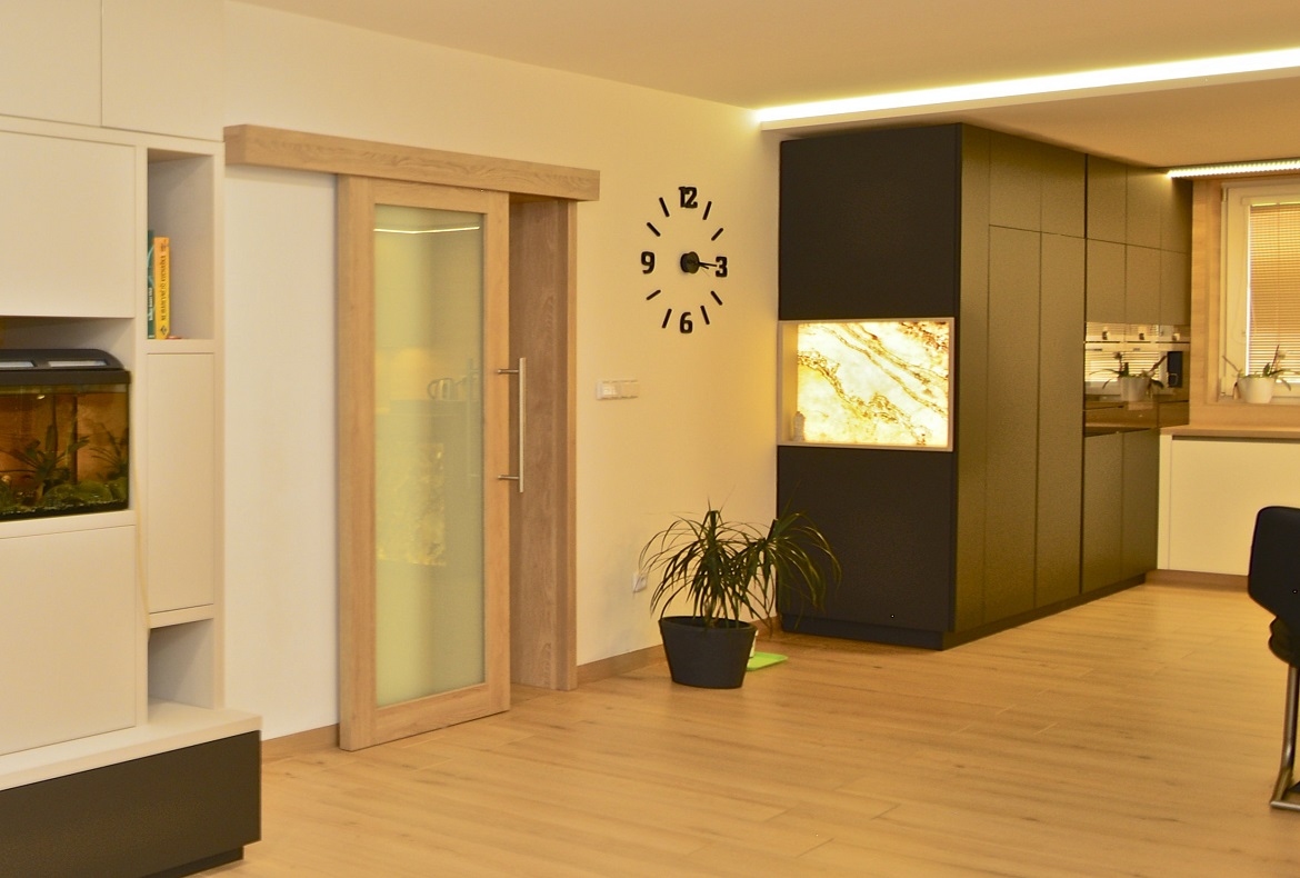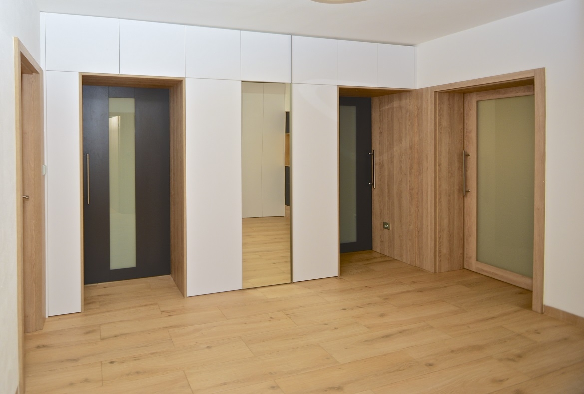 Bezfalcové prosklené a plné dveře, které mohou plynule navazovat na nábytek.