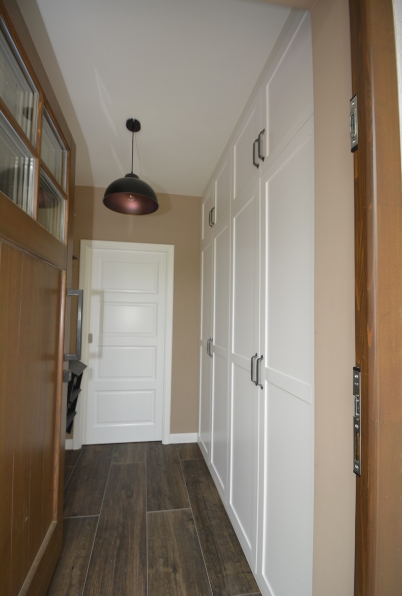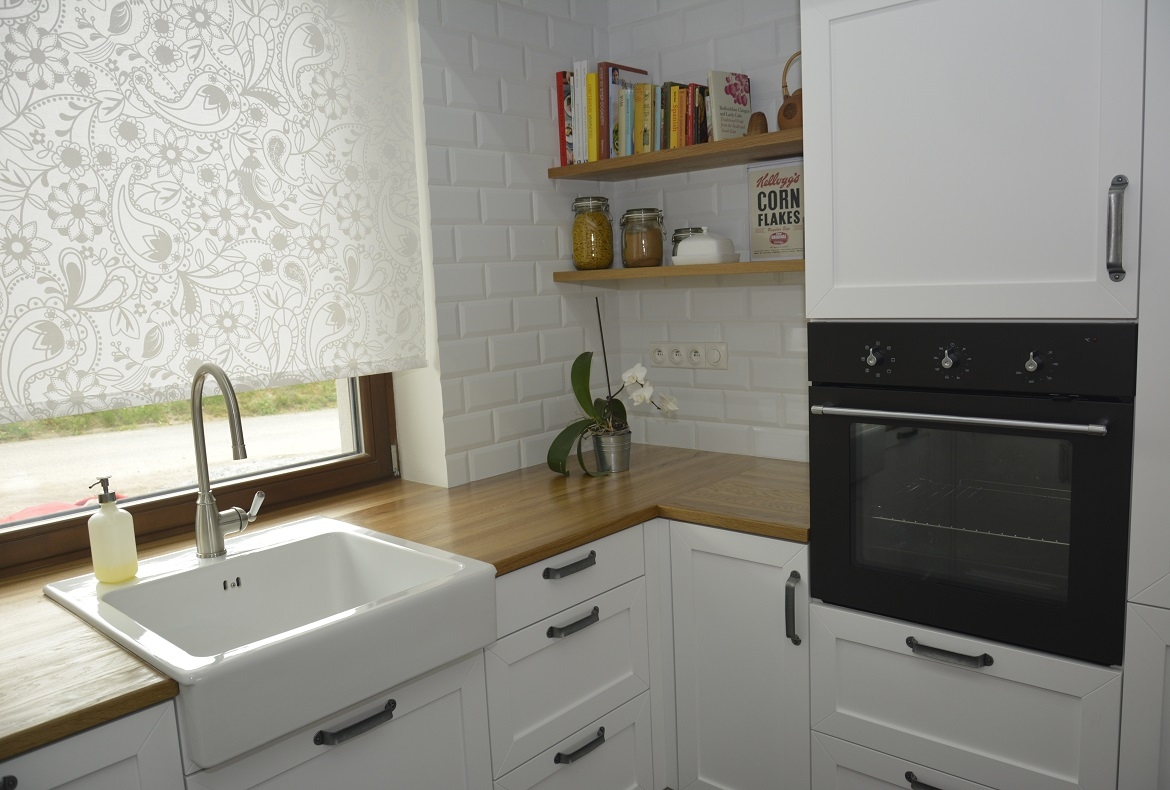 Anglický interiér v přírodních materiálech s kombinací bílé.